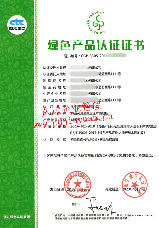 綠色產品認證證書